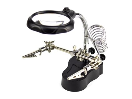 Praktický Kovový Držiak - Tretia Ruka s Lupou, LED...
