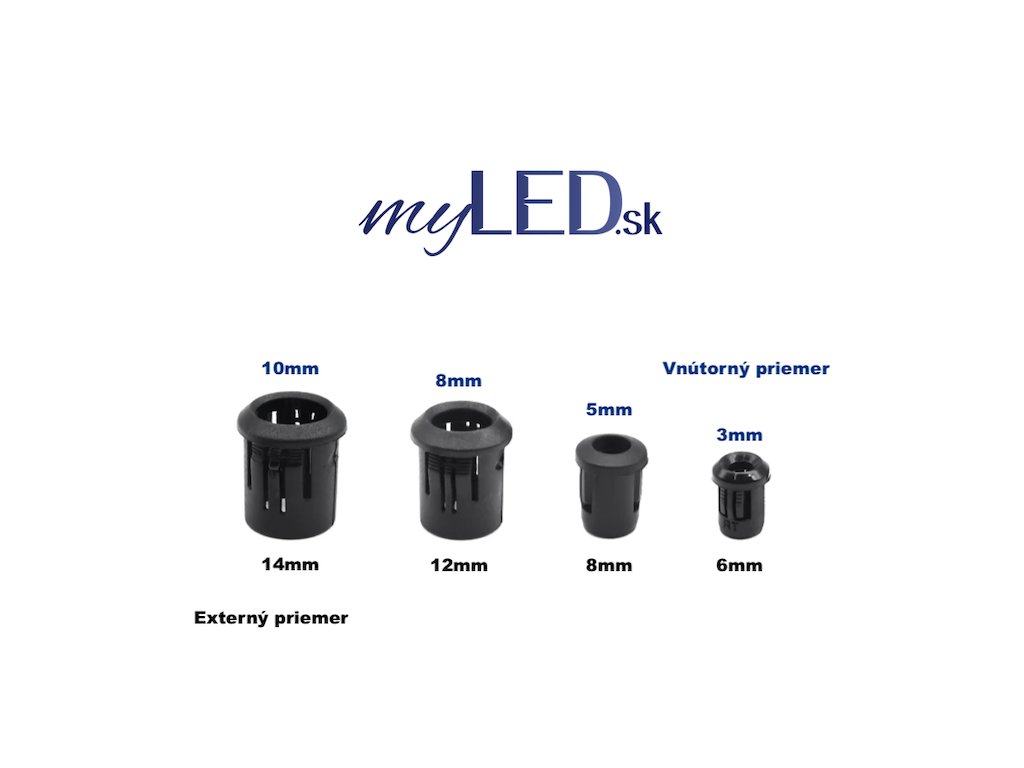 Plastová objímka pre LED diódy, dostupné vo veľkostiach: 3mm, 5mm, 8mm, 10mm