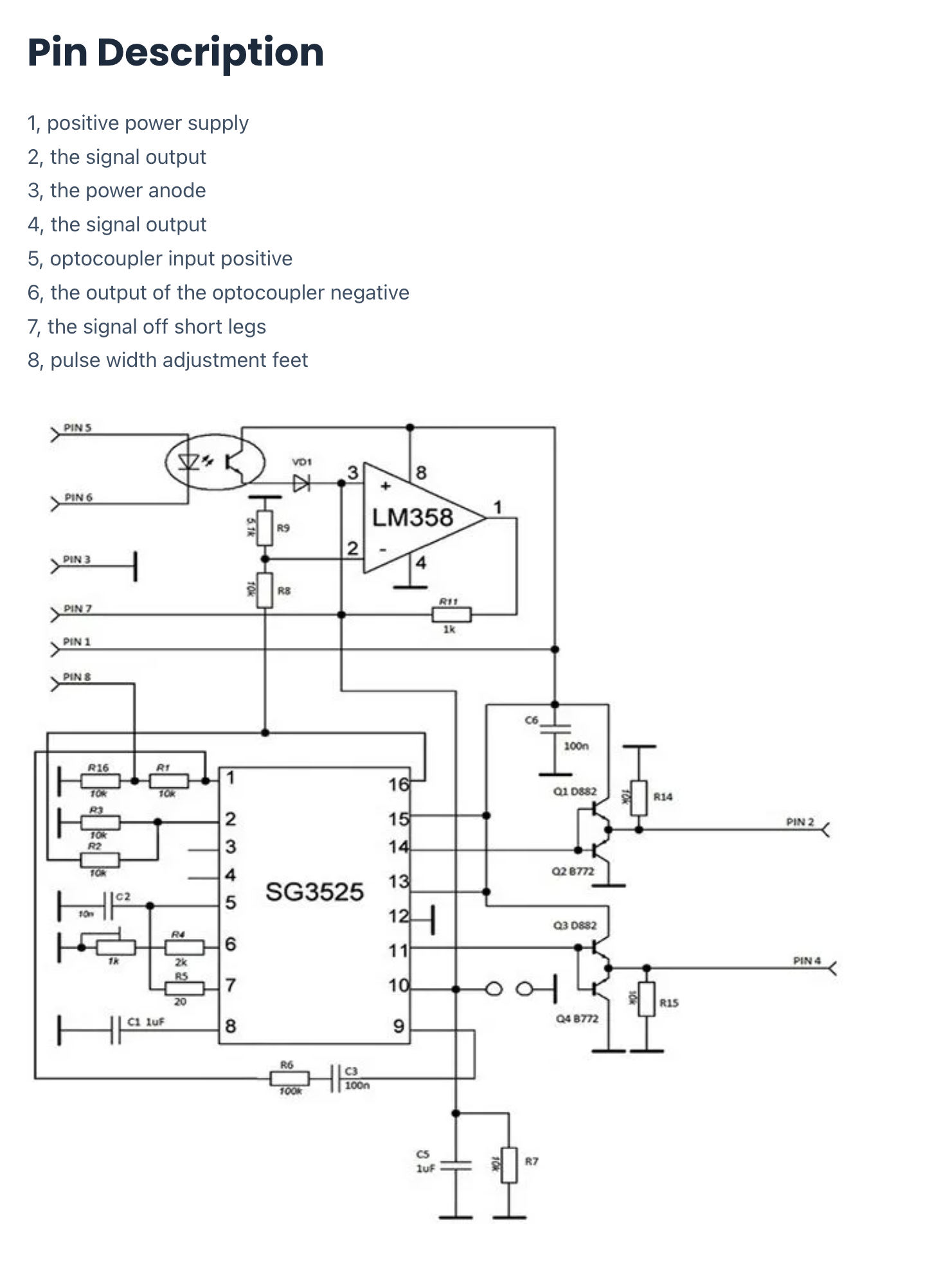 Modul SG3525 LM358 je doska ovládača invertora používaná pre DIY projekty invertorov, predzosilňovače audio mixérov a nastaviteľné napájacie zdroje, ktorá kombinuje PWM regulátor SG3525 na generovanie frekvencie a operačný zosilňovač LM358 na zosilnenie signálu a ochranné funkcie.